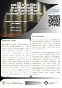 This course is designed and offered in collaboration with the Pyin Nya Man Daing Programme and the YRI.